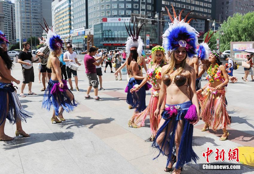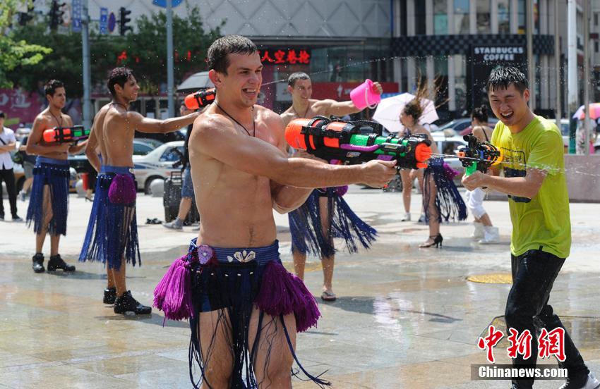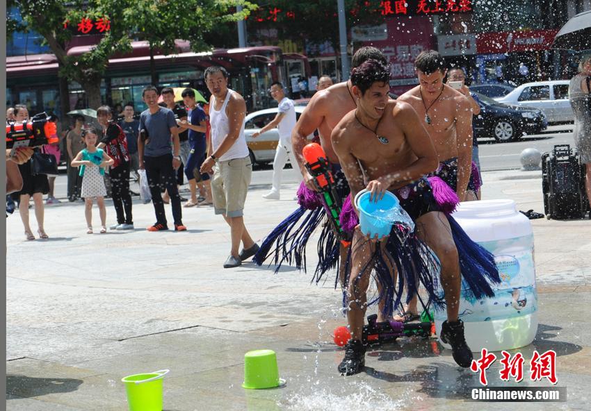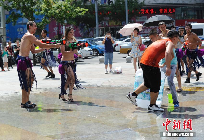 気溫が31度に達(dá)した吉林省長春市は8月3日、長春の街で海外から來た美女?イケメンと市民が一體となり水と戯れ、暑気払いを行なった。中國新聞網(wǎng)が伝えた。(編集JK)