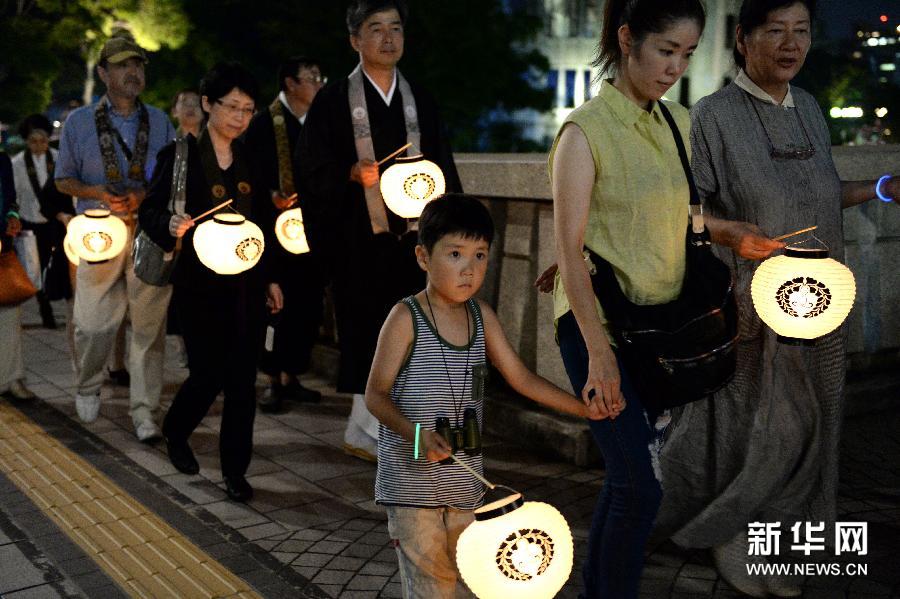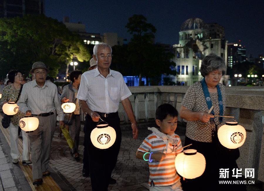 日本?広島原爆ドーム遺跡の近くで8月5日、ちょうちんに火を燈しながら記念イベントに參加している広島市民。侵略戦爭を発動(dòng)した日本を早く降伏させるために、米軍は1945年8月6日と9日、それぞれ広島と長崎に原子爆弾を投下した。新華網(wǎng)が伝えた。(編集YX)
