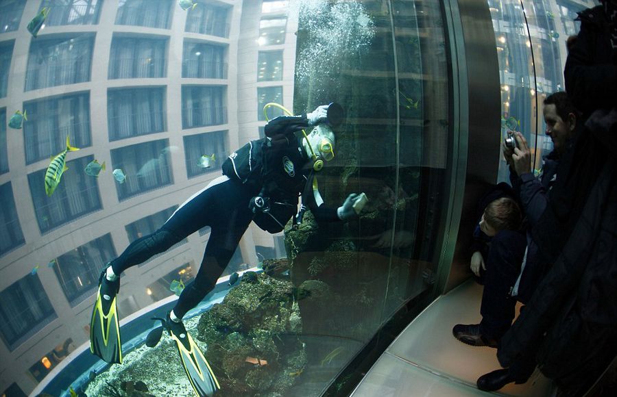 ドイツ?ベルリンにあるラディソン?ブル?ホテルは、巨額を投じて、ホテル內(nèi)に高さ約25メートルの巨大なガラス張りの水族館「アクアドム」を建造した。この水族館は、円柱型の水槽としては世界最大の大きさを誇るという。この水族館の最大の特徴は、內(nèi)側(cè)にエレベーターが內(nèi)蔵されており、來場者がエレベーターに乗って上から下まで鑑賞できる點だ。英デイリーメール紙の4日付報道を引用して環(huán)球網(wǎng)が伝えた。