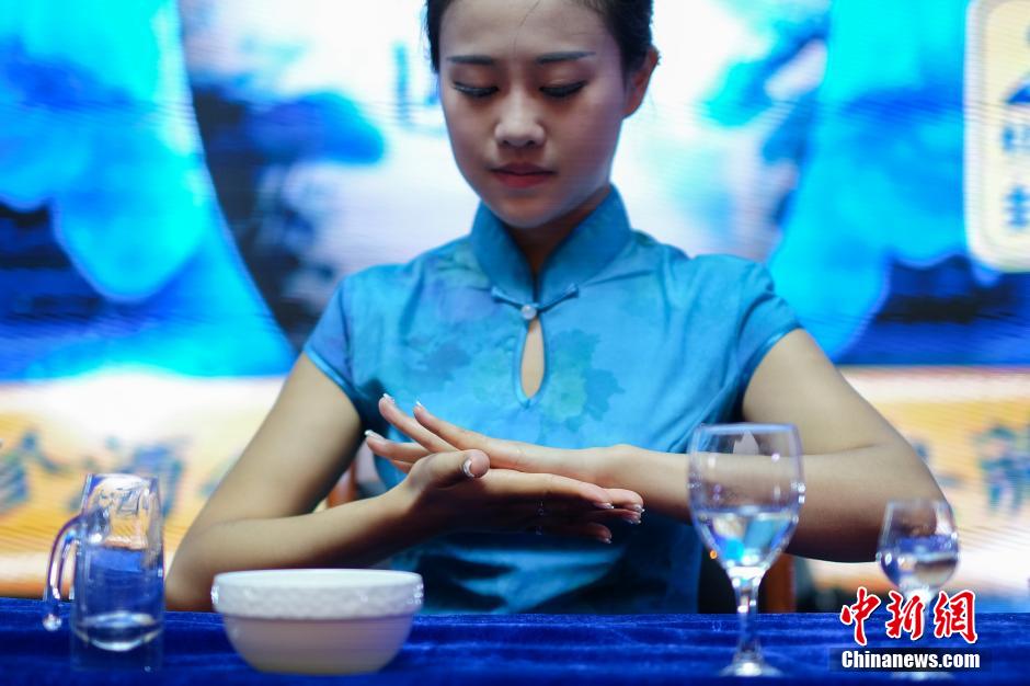 貴州省遵義市で8月9日、美人利き酒師がイベントで「醤香型」白酒(香りによる分類の一つ)の評(píng)価の仕方を?qū)g演し、市民の注目を集めた。中新網(wǎng)が伝えた。(編集JK)