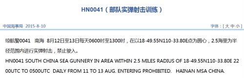 中國海事局、11~14日に南中國海の複數(shù)海域で射撃訓(xùn)練 (3)