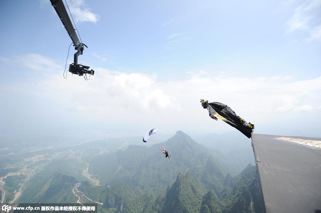 ウィングスーツパイロットのアスペンとスカイダイビングプレイヤーのビョルンの2人が8月11日、張家界天門(mén)山で上空でのエクストリームスポーツにチャレンジした。まずアスペンはウィングスーツを著用し天門(mén)山の山頂から飛び立ち、ビョルンは天門(mén)山上空のヘリコプターからスカイダイビングを行なった。彼らはそれぞれ飛行したのち、スカイダイビングプレイヤーのビョルンがウィングスーツパイロットのアスペンの身體の上に正確に覆いかぶさり、一緒に高速飛行した。遠(yuǎn)くから見(jiàn)るとまるで空飛ぶ絨毯が空中を飛んでいるようだ。難易度が高いスリリングなチャレンジパフォーマンスは現(xiàn)地の観客を圧倒した。人民網(wǎng)が伝えた。(編集JK)
