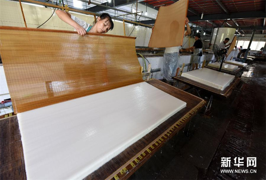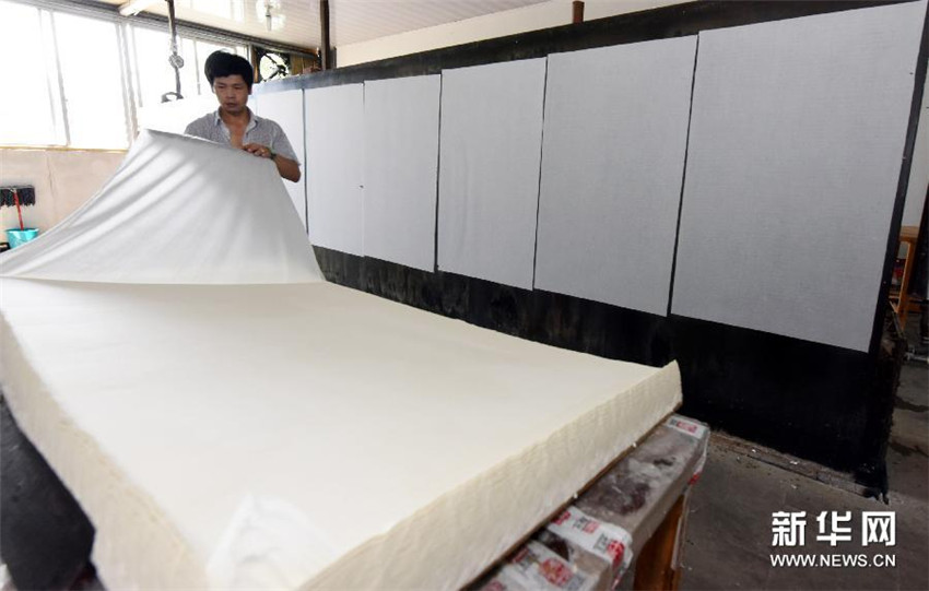 江西省の伝統(tǒng)手工蕓品である「鉛山連四紙」は「千年壽紙」とも稱され、宋、元の時代にその名を馳せていた。なよ竹を原料とし、手作業(yè)による72もの工程を経て1年かけて作られるこの紙は、防蟲耐熱のキメが細かい真っ白な質(zhì)感で永久に変色しない。2006年、連四紙製造技術(shù)は國家無形文化遺産に初めて登録された?,F(xiàn)在、連四紙の年間生産量にあたる4萬束(1束=約100枚)が國家図書館や浙江省図書館など多くの機関との間で次々に製品提供の合意にいたり、古書の修繕用紙として使用されるようになった。新華網(wǎng)が伝えた。(編集JK)