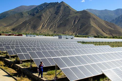 西蔵(チベット)自治區(qū)山南地區(qū)桑日県は2010年、無錫尚徳集団、中広核集団公司、中電投集団公司、保利協(xié)鑫能源控股有限公司が投資?建設する太陽光発電所の誘致に成功した。太陽光発電所の規(guī)模は現(xiàn)時點で60MW、投資額は11億元(1元は約19.2円)、工業(yè)生産額は2億元以上に達している。寫真は8月10日、中広核太陽能(桑日)10MW太陽光発電所內で、定期點検を実施する作業(yè)員。新華社が伝えた。(編集YF)
