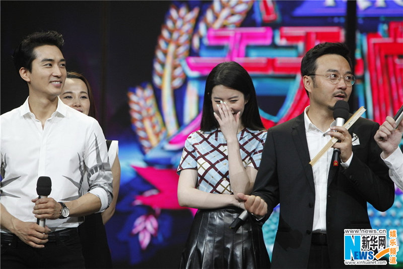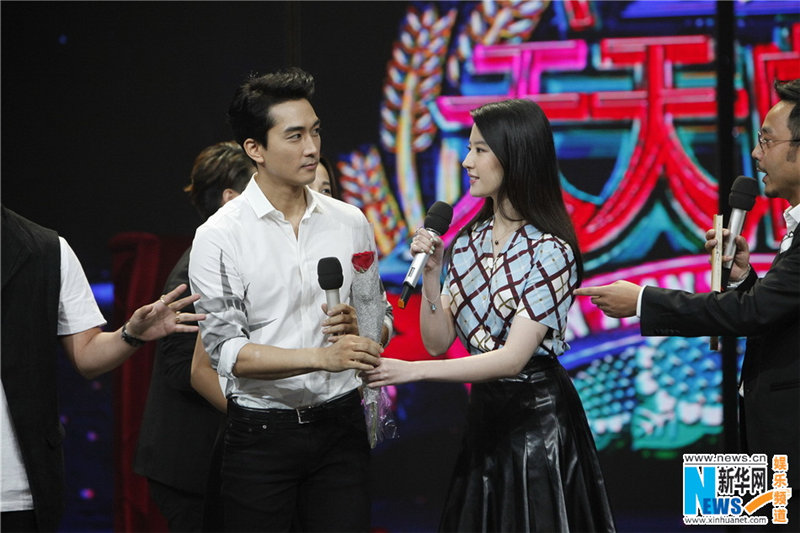 韓國の俳優(yōu)、ソン?スンホンと中國の女優(yōu)、劉亦菲(リュウ?イーフェイ)が湖南省長沙市で、中韓合作映畫「第三種愛情」PRのため湖南衛(wèi)星テレビのトーク番組「天天向上」の録畫を行なった。この2人が熱愛が明らかになって以來初めて、テレビに登場した。