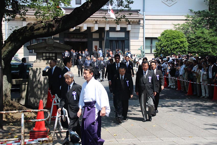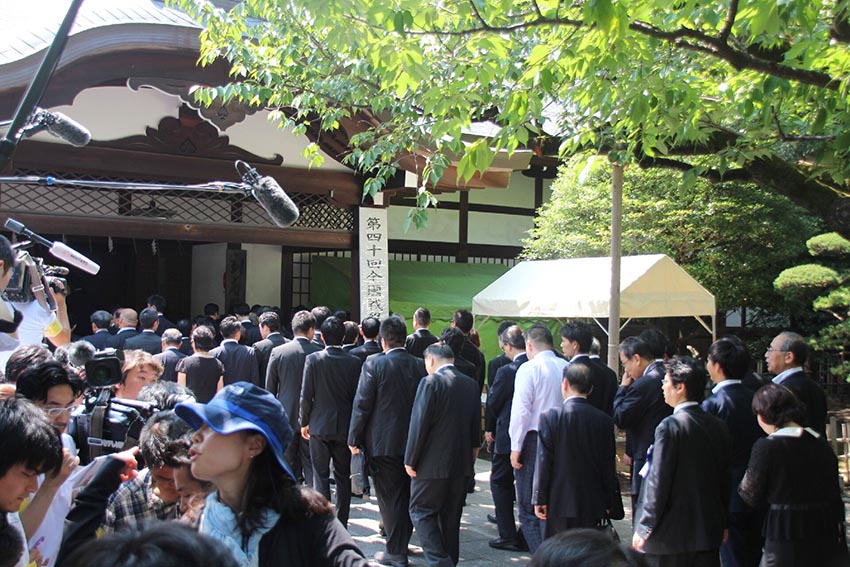 現(xiàn)地時間の本日11時頃(北京時間10時頃)、日本の國會議員から成る「みんなで靖國神社に參拝する國會議員の會」の會員60人余りが靖國神社を集団參拝した。この団體は毎年この日に靖國神社を參拝している。(編集IM)