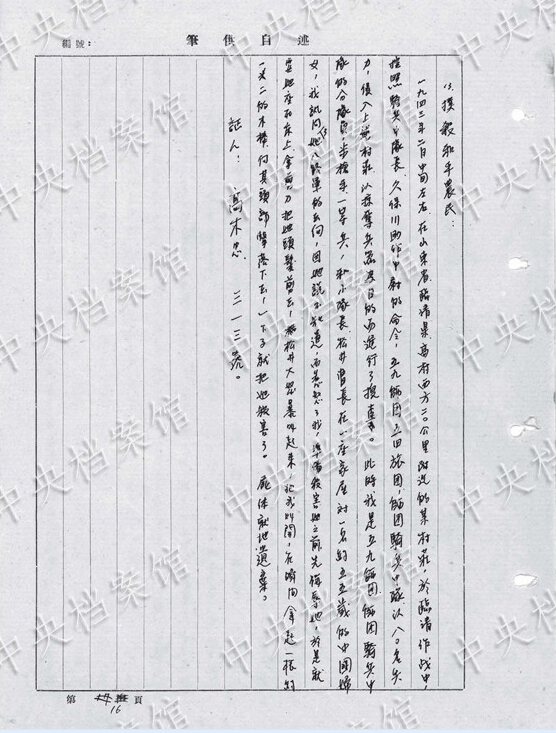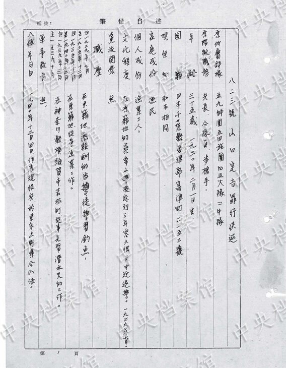 國(guó)家公文書局はは16日、公式サイトで『中國(guó)侵略日本人戦犯供述書選』(六)--日本人戦犯?山口定吉の供述書を公開した。
