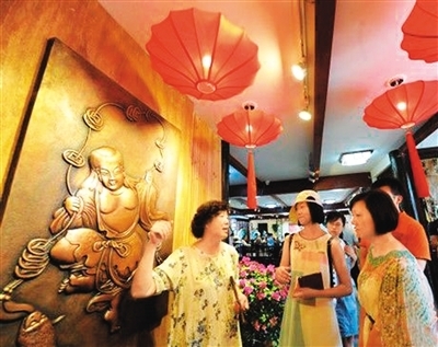胡同と呼ばれる古い路地の街並みが殘り、700年以上の歴史を誇る北京の「南鑼鼓巷」は、最近では、無(wú)形文化遺産の分野と正式に連攜している。14日、観光客でにぎわう南鑼鼓巷にある、黒をバッグに金色で「北京財(cái)神」と書かれた看板を掲げ、戸の枠が赤の漆で仕上げられた「無(wú)形文化遺産體験拠點(diǎn)」が異彩を放っていた。南鑼商會(huì)の徐巖會(huì)長(zhǎng)によると、同拠點(diǎn)は彫漆、蒙鑲、泥塑、臉譜などの北京の無(wú)形文化遺産継承者15人によって設(shè)立された。人民日?qǐng)?bào)海外版が報(bào)じた。