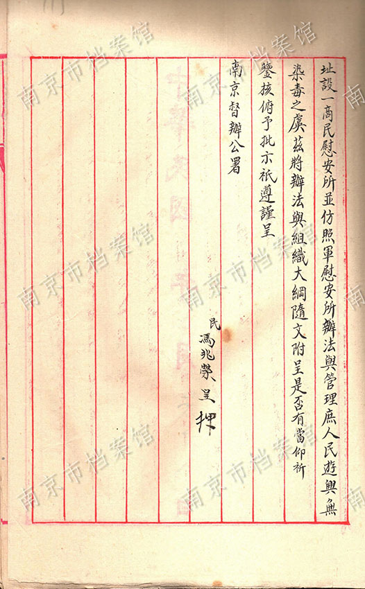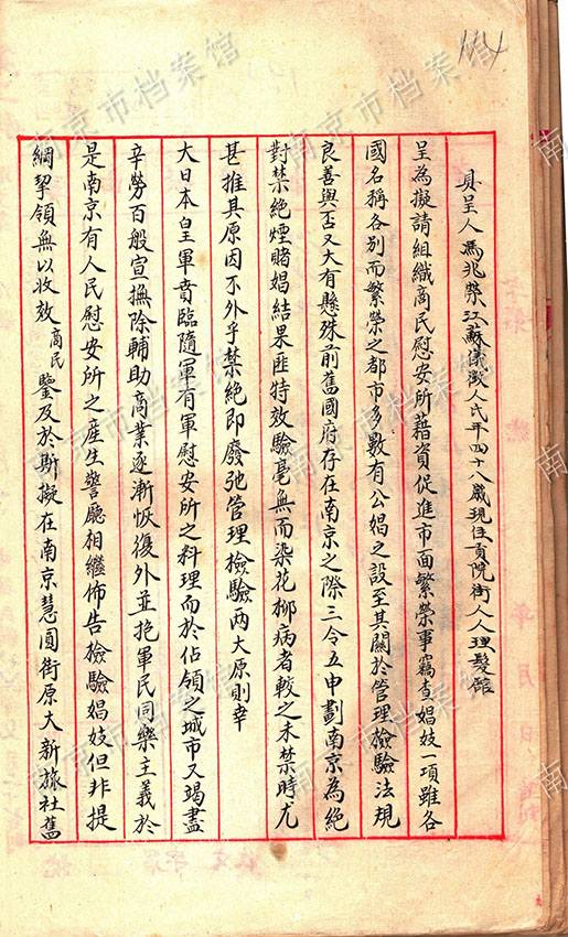 (2)1938年7月28日、日本軍の慰安所をまねて商人慰安所を設(shè)置することに関する商人?馮兆栄の上申書で、南京市公文書館所蔵。