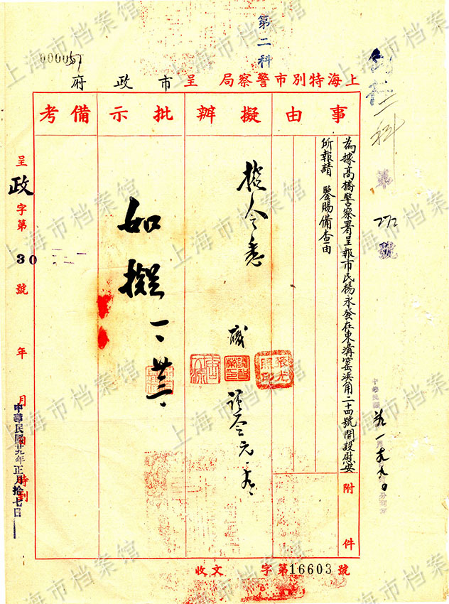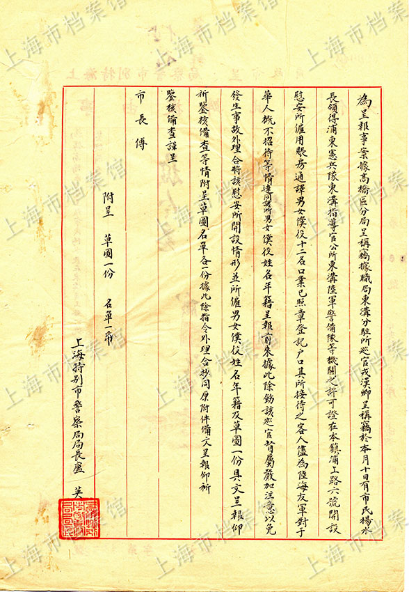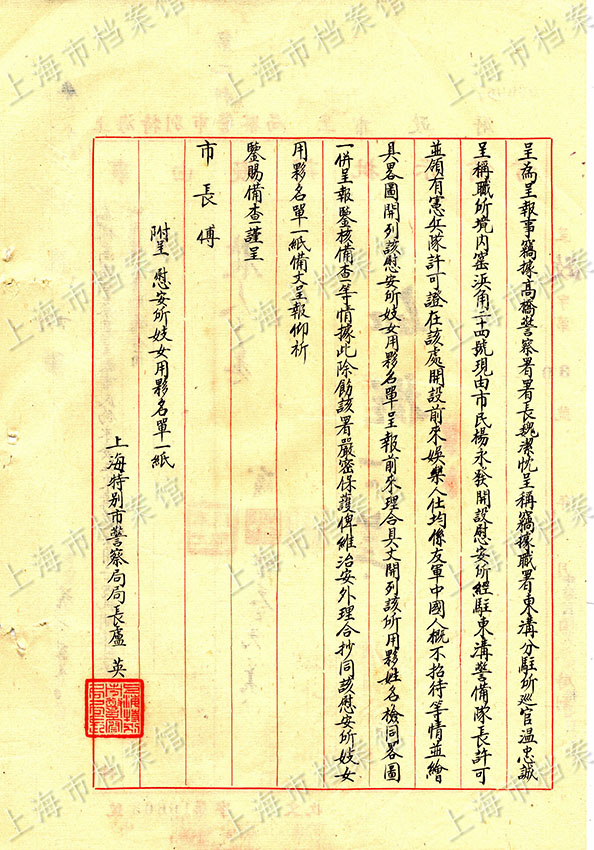 (3)1939年2月~1940年1月、上海浦東地區(qū)で親日分子による「慰安所」開設(shè)を許可する駐上海日本軍警憲の関連資料で、上海市公文書館所蔵。