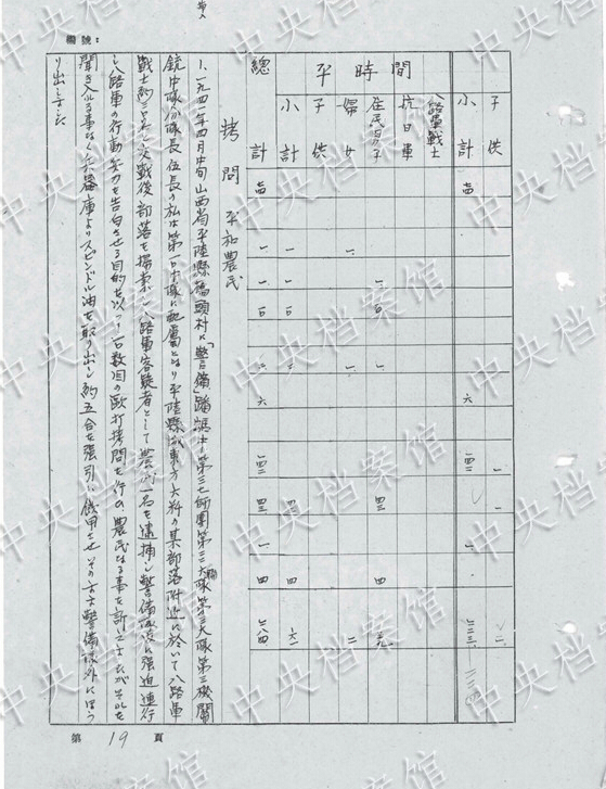 上園福夫の1954年8月17日の供述書によると、上園は1920年、鹿児島県生まれ。1939年に中國侵略戦爭に參加し、1945年8月に捕虜になった。重要な犯罪行為は次の通り。