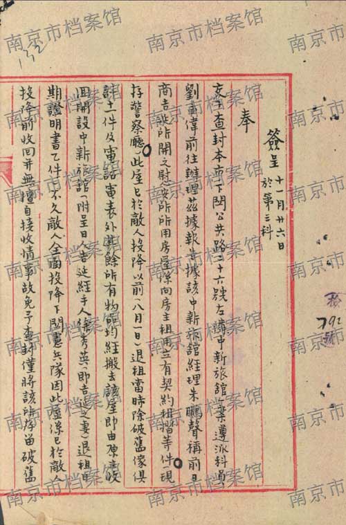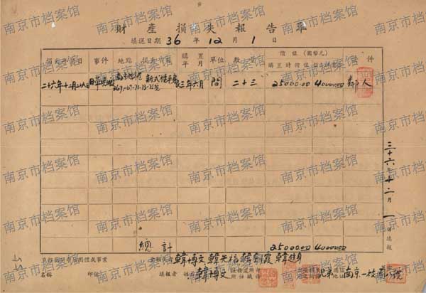 抗日戦爭勝利後、南京市政府の所屬機構(接収委員會、抗戦損失調査委員會)が戦時中に日本に略奪された資産を接収し、戦爭による損失を調査する中で、戦時中に日本が南京の一般市民の家を強奪して「慰安所」を設立したことに関する記録があったことが分かった。