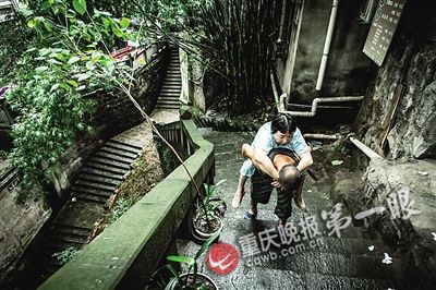 一年365日、ほとんど毎日外に出かける二人。大雨でなければ、少々の雨が降っていても、胡さんは王さんを背負って出かける。「夫は私の足」と王さん。顔色のいい王さんと比べると、胡さんの頭は白く、腰は曲がり、両手はごつごつしている。これまでの苦労の証だ。