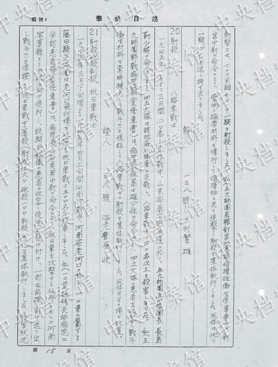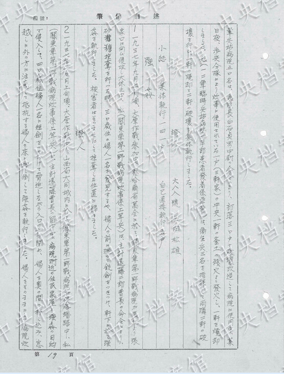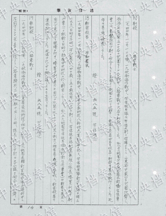1942年6月~12月、山東省萊蕪県で「誘拘監(jiān)禁された朝鮮婦人に對して、一名に二〇回強姦を執(zhí)行しました」。(編集NA)