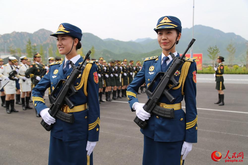 説明によると、抗日戦爭(zhēng)ならびに世界反ファシズム戦爭(zhēng)勝利70周年記念の軍事パレードの中で、三軍儀仗隊(duì)の女性隊(duì)員51人がそれぞれ陸?海?空軍に分かれて17人の橫並び編成で整列し、三軍儀仗隊(duì)の第10-12列の位置で一糸亂れぬ行進(jìn)を披露する。(編集JK)