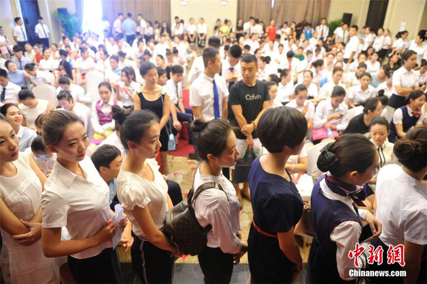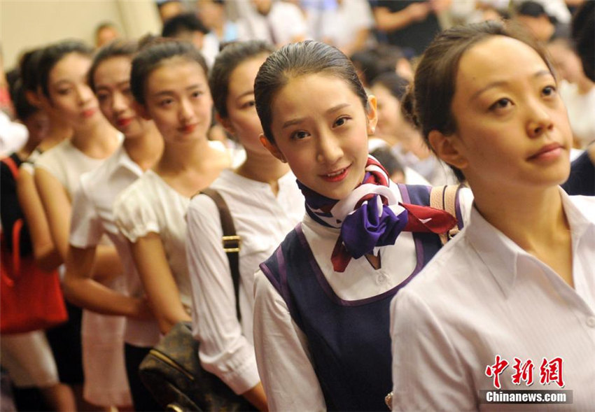 中國の航空會(huì)社の國際線、國內(nèi)線の増便に伴い、客室乗務(wù)員の需要も高まっている。海南航空の社員によると、客室乗務(wù)員の募集において、90年代生まれの若者は大半を占めている。寫真は22日、山西省太原市で行われた海南航空客室乗務(wù)員の一次試験に參加した90年代生まれの美人。(編集SC)