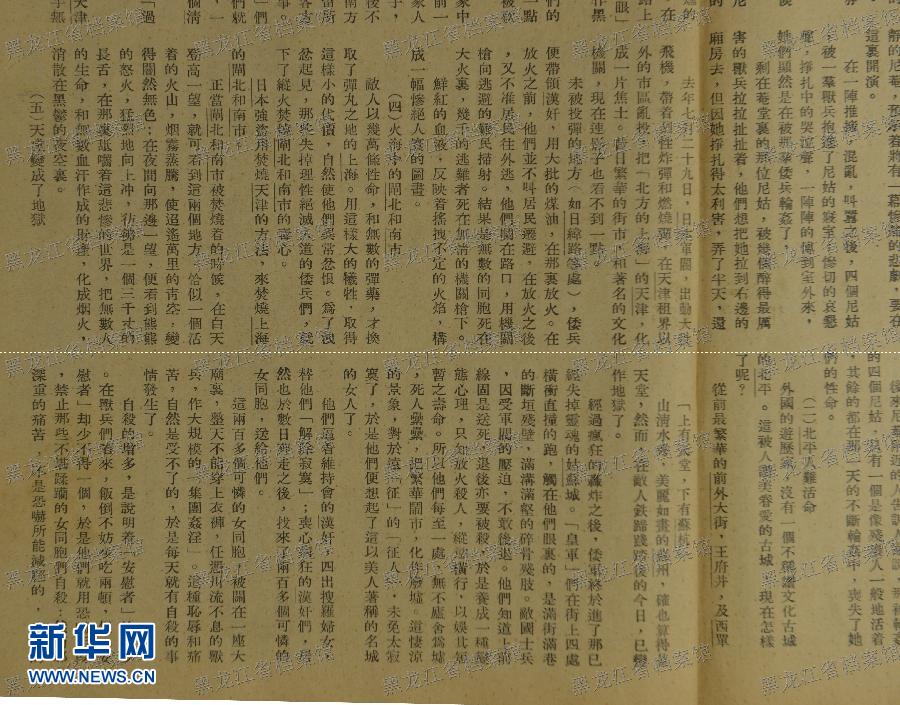 二つ目は1938年武漢で出版された『日寇暴行実録』による「慰安婦」に関する記述(1938年、黒竜江省公文書館)。中國國民政府軍事委員會政治部が1938年に武漢で出版した『日寇暴行実録』の中、「慰安婦」に関する文字付録「日寇暴行紀(jì)略」が付隨している。(編集LX)