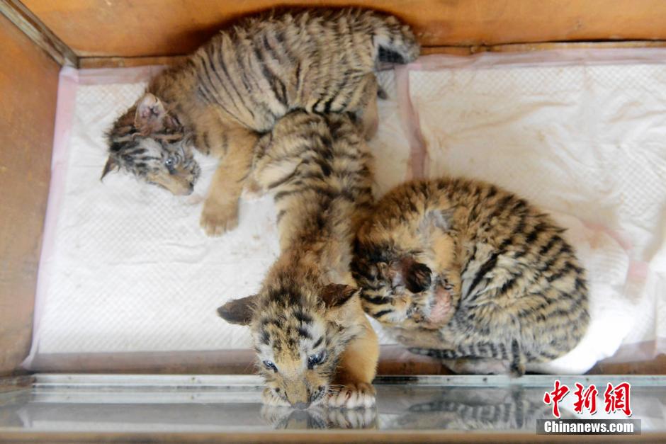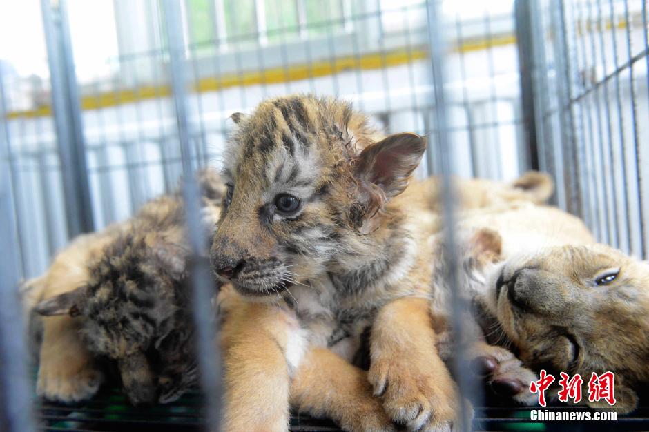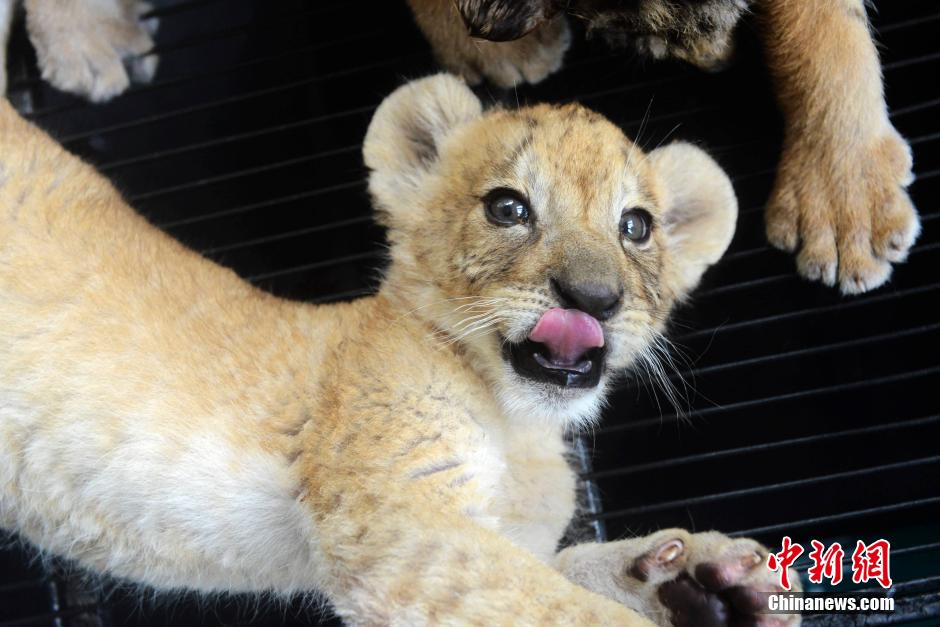 山東省青島市の森林野生動(dòng)物ワールドで8月26日、生後1か月を迎えようとしているシベリアトラ7頭とアフリカライオン4頭の赤ちゃんが保育室で遊んでいる。その可愛らしい表情にガラス窓の外にいる子供の観客から歓聲があがった。中國(guó)新聞網(wǎng)が伝えた。(編集JK)