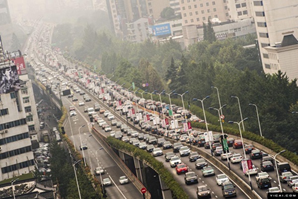 寫真は2014年中秋節(jié)前夜。杭州市中河高架橋での渋滯。