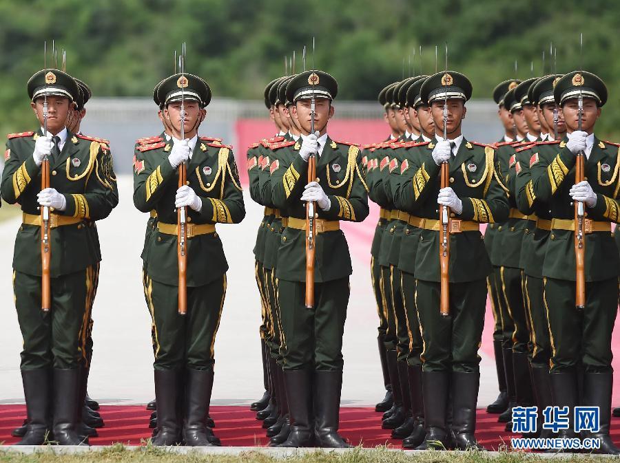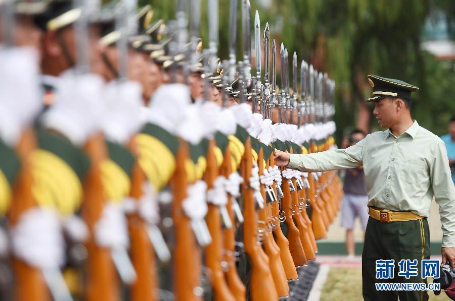 中國(guó)人民抗日戦爭(zhēng)ならびに世界反ファシズム戦爭(zhēng)勝利記念70周年式典を間近に控え、このほど、北京近郊の武裝警察訓(xùn)練基地に足を運(yùn)び、訓(xùn)練中の記念式典の國(guó)旗掲揚(yáng)式における武裝警察護(hù)衛(wèi)隊(duì)列に密著してきた。護(hù)衛(wèi)隊(duì)列は200人で構(gòu)成されており、記念式典での國(guó)旗掲揚(yáng)式で護(hù)衛(wèi)任務(wù)を擔(dān)當(dāng)する。旗の護(hù)衛(wèi)隊(duì)列196人、掲揚(yáng)チーム4人が統(tǒng)一された新しい武裝警察の國(guó)旗掲揚(yáng)式用禮服に身を包みブーツを履いている。護(hù)衛(wèi)隊(duì)列の平均身長(zhǎng)は185センチ、平均年齢は22歳だ。この隊(duì)列は今年6月から連日10時(shí)間半の集中訓(xùn)練を行っている。新華網(wǎng)が伝えた。(編集JK)
