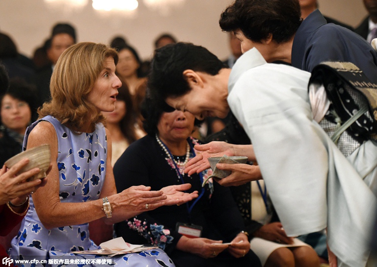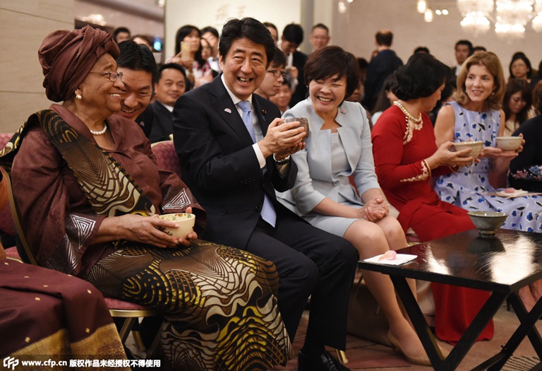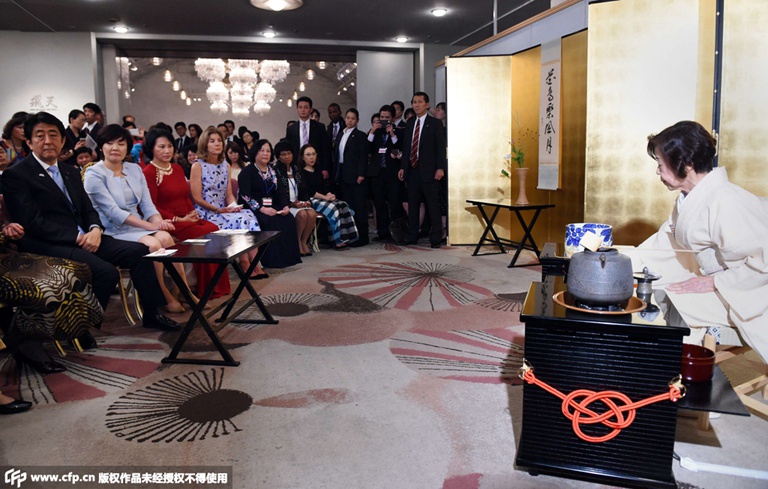 日本の安倍晉三首相夫妻は29日に日本の東京で、女性政策を議論する國(guó)際シンポジウム(女性版ダボス會(huì)議)に出席した各國(guó)の代表らとお茶を楽しんだ。同シンポは日本政府の主催で2日にわたり行われた。(寫真はCFP視覚中國(guó)より)(編集KS)