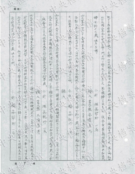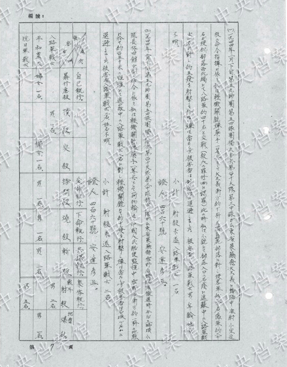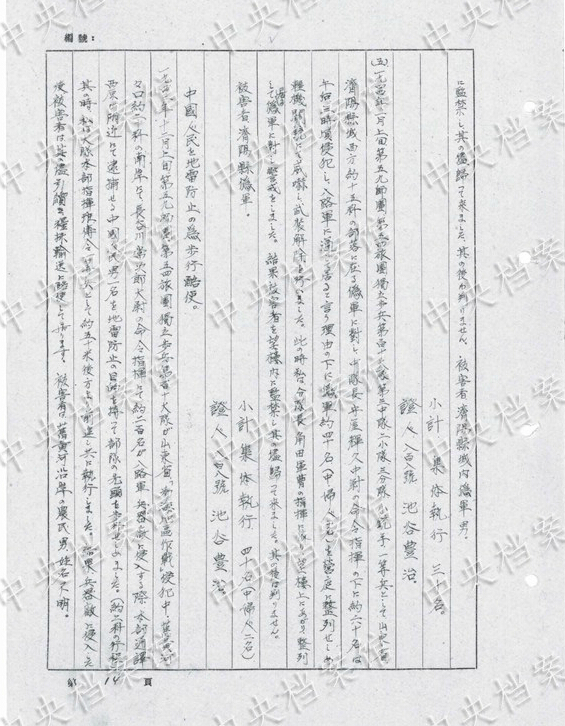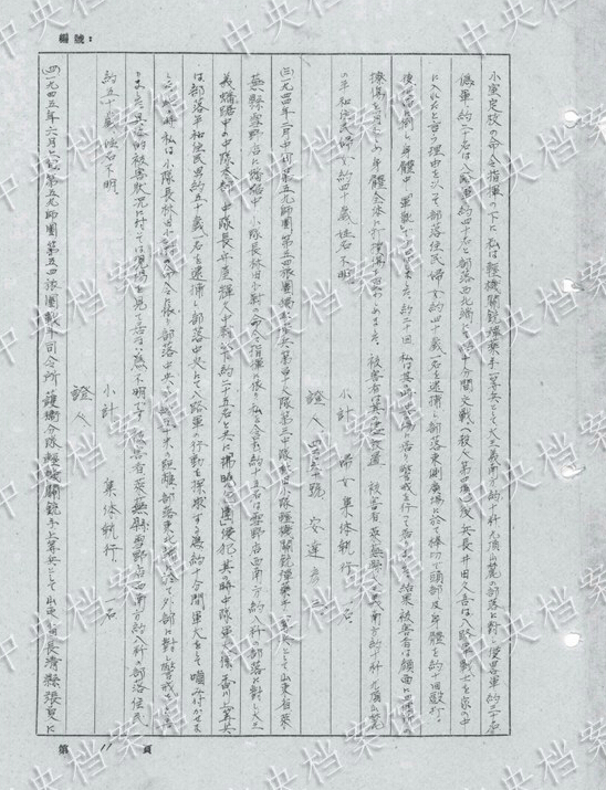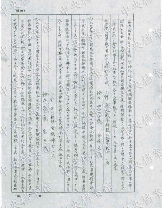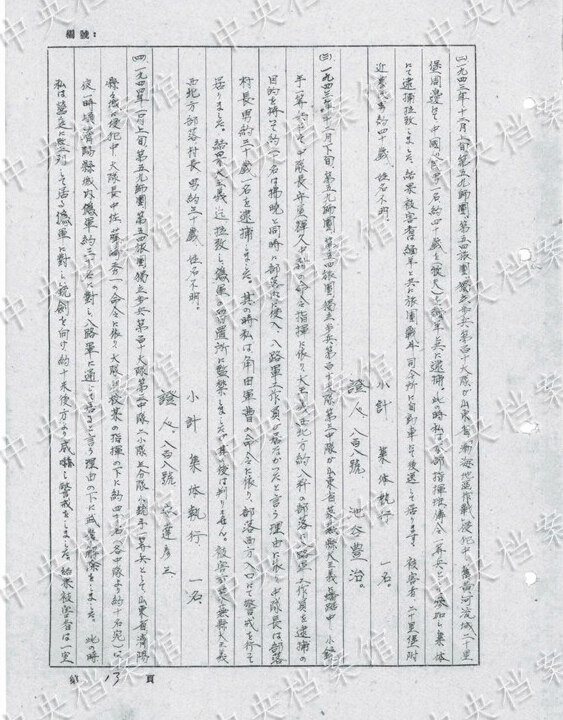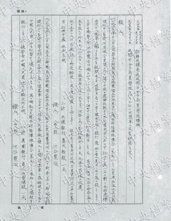 1945年5月22日、山東省日照県において、仲間と共に「家屋に侵入し、重病にて就寢中の老婆約六十歳一名に対し、下半身裸體にし、私は直徑約六サンチ、長さ約二十サンチの甘藷を陰部の中に完全に押し入れました。結(jié)果陰部より大量に出血し殺害しました」。(編集LX)