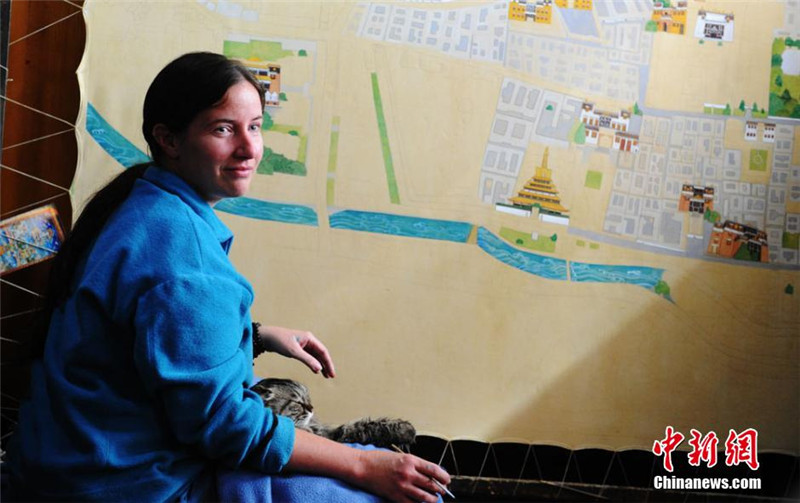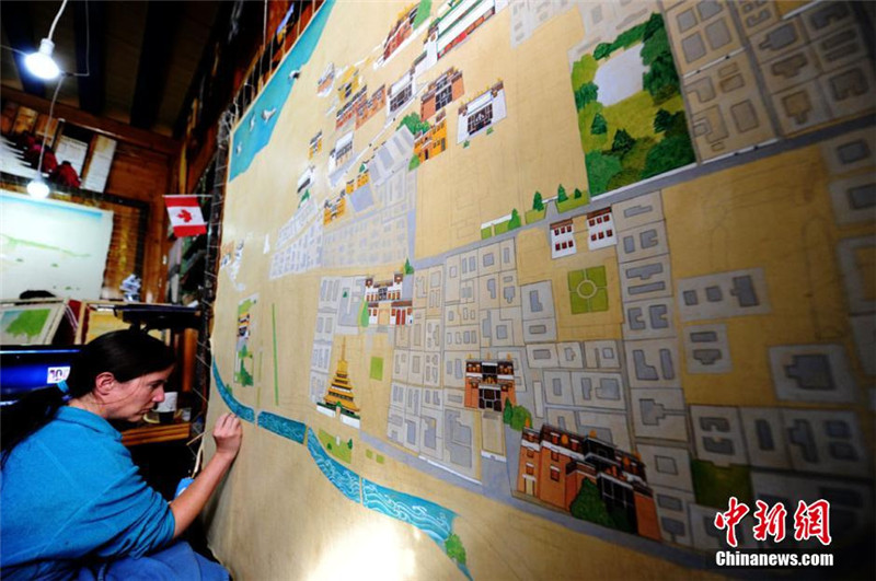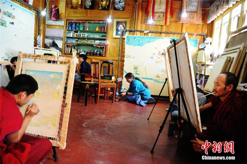 甘粛省甘南チベット族自治州夏河県の小さな庭に8月末、カナダ人の女性畫家クリステル?オブエハンドさんがマットの上に胡坐をかいて熱心に「タンカ」を描いている。中國新聞網(wǎng)が伝えた。