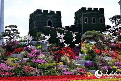 天安門広場(chǎng)、萬(wàn)里の長(zhǎng)城をテーマにした花のオブジェが國(guó)慶節(jié)まで設(shè)置>>