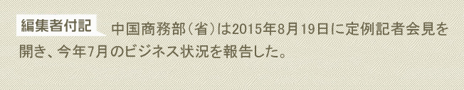 2015年7月、中國(guó)の対外投資は前年同期比18.6%減となり、6月(同15.5%減)に続き、2ヶ月連続のマイナス成長(zhǎng)となった。データによると、1~7月の非金融分野の対外直接投資額は20.8%増の3890億元(1元は約19円)となった。