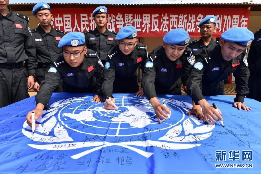 リベリアのシノエ郡グリーンヒルで9月1日、中國三回目の在リベリア平和維持警察機動隊はUNMIL(國際連合リベリア?ミッション)のウクライナ空軍を「青いベレーでともに平和を」というテーマの署名式に招待し、中國人民抗日戦爭ならびに世界反ファシズム戦爭勝利70周年を共に記念した。新華網(wǎng)が伝えた。(編集JK)