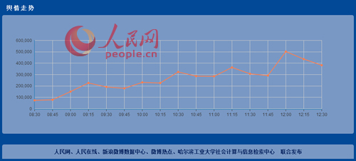集まった軍事パレードに関する微博と転送された微博のコメント本數(shù)はのべ453萬本。データをみると、ネットユーザーがコメントを発信したピークの時(shí)間は午前12時(shí)で、のべ50萬本が発信された。