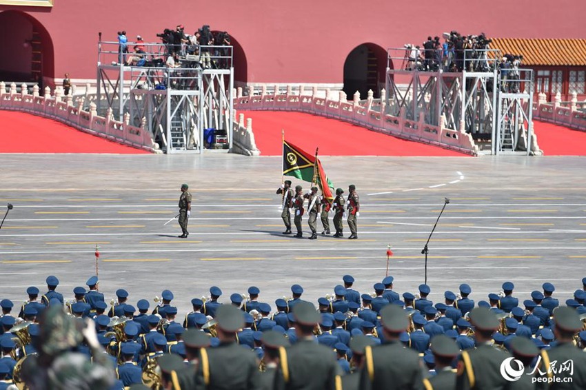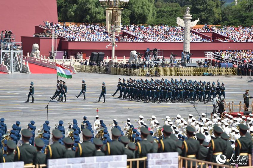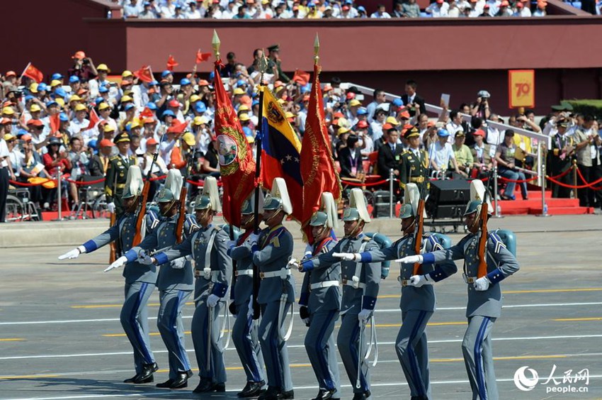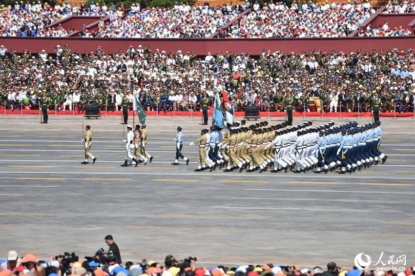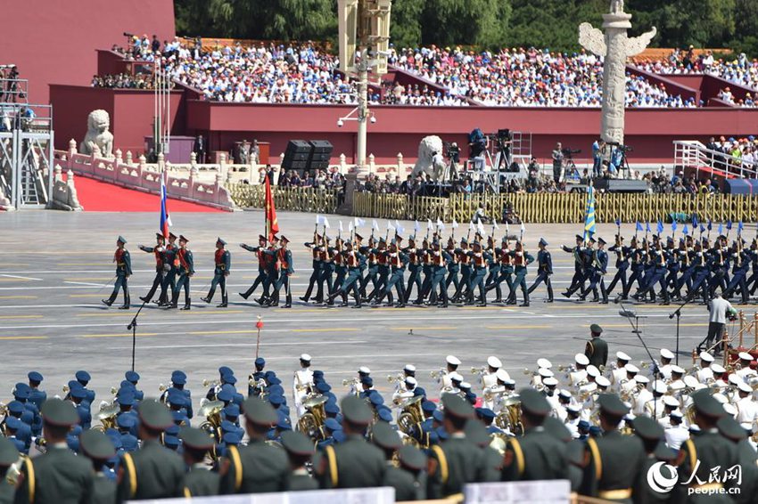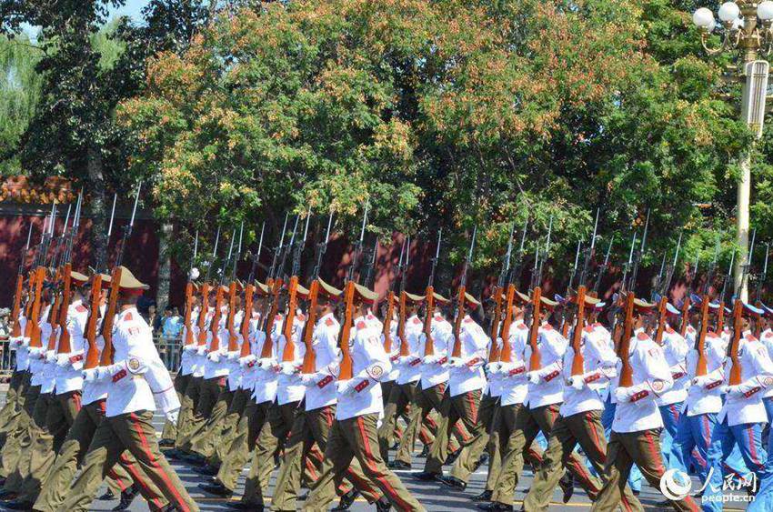 中國人民抗日戦爭ならびに世界反ファシズム戦爭勝利70周年記念式典が9月3日に行われ、世界五大陸から17カ國の軍隊の隊列と代表隊が閲兵分列式に參加した。(編集LX、XM)