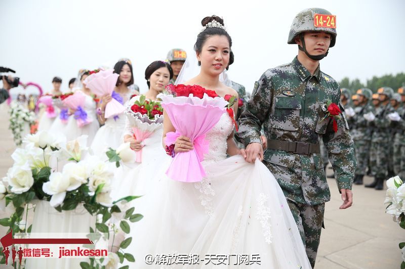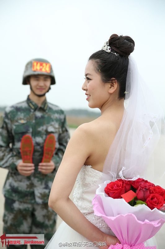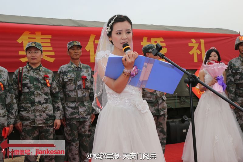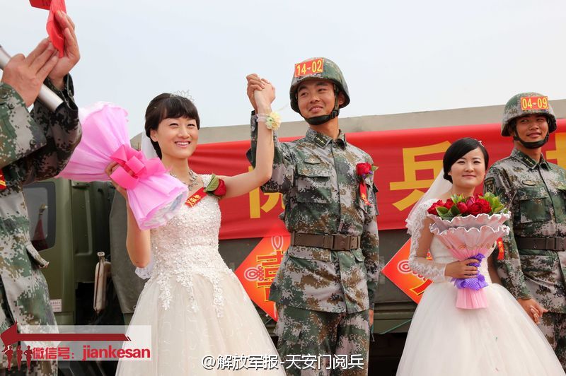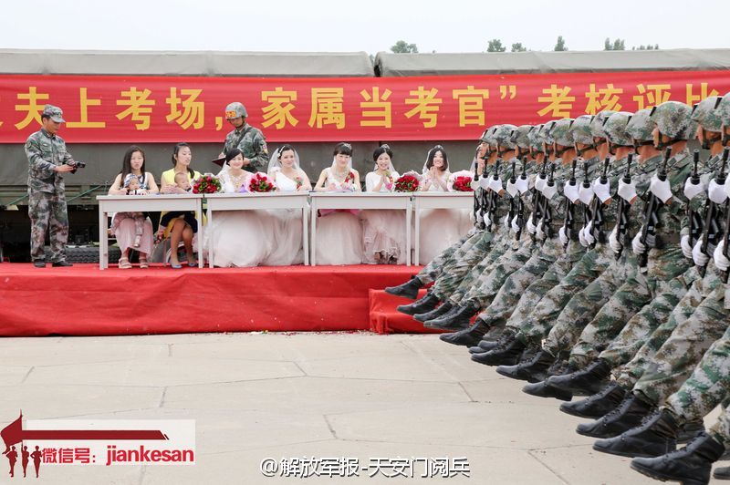 中國(guó)軍は世界の人々の前で見(jiàn)事な祭典を開(kāi)催した。その裏側(cè)には獻(xiàn)身的な妻たちの姿があった。軍事パレードの前日、劉老荘英雄模範(fàn)隊(duì)列と車輪付裝甲突撃車隊(duì)列の兵士は、愛(ài)する人や妻への借りを返そうと、集団プロポーズ?集団結(jié)婚を行った。その中で、家族が「試験」を課すという場(chǎng)面もあった。(編集YF)