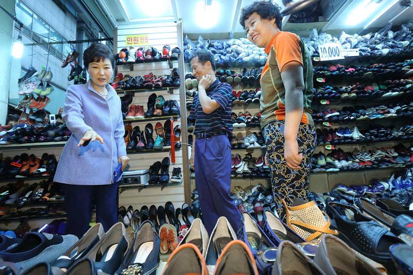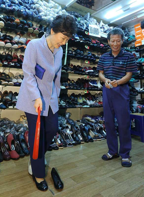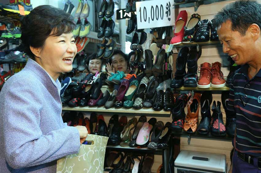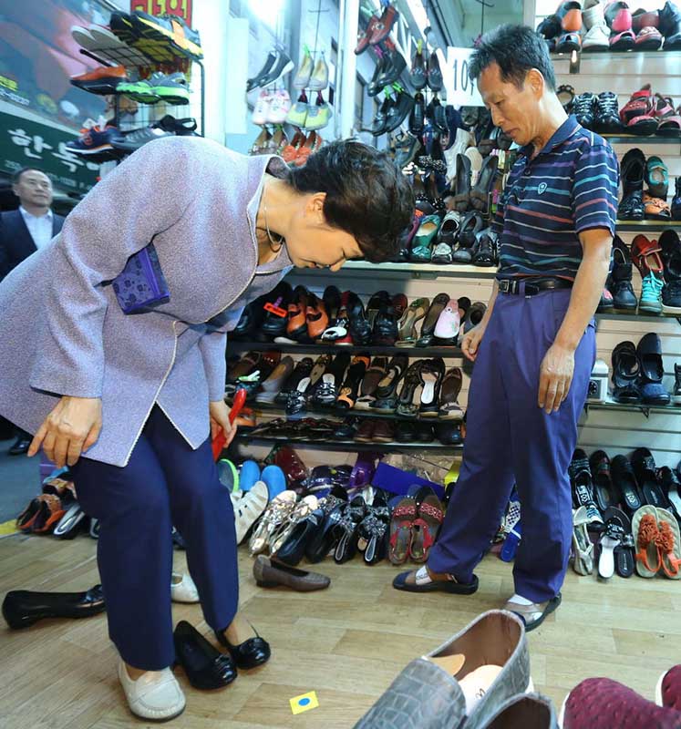 韓國のテグ市で現(xiàn)地時間9月7日、樸槿恵(パク?クネ)大統(tǒng)領はテグ市西門市場を訪れ、革靴店で一足の靴を購入した。樸大統(tǒng)領は今回の「道端で靴を買う」行動は間違いなく庶民派イメージを強めるものだ。國際在線が伝えた。