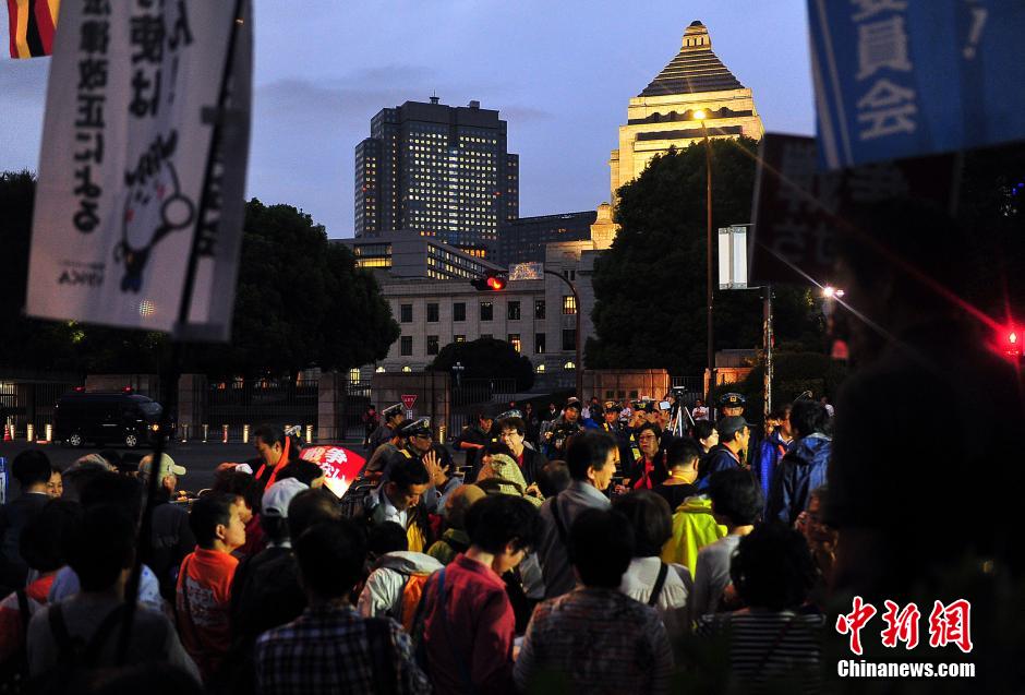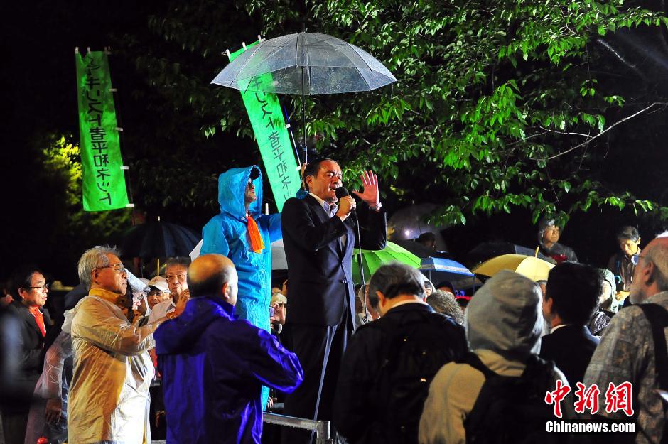 日本列島を縦斷した強(qiáng)い臺風(fēng)も、日本國民の安保法案反対の歩みを阻むことはできなかった。10日夜に雨の中數(shù)千人が國會を包囲し、再び抗議集會を開いた。中國新聞網(wǎng)が伝えた。