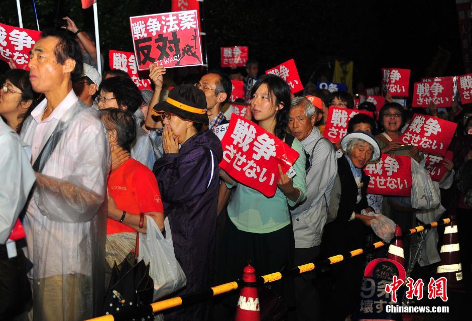 その前日にも數(shù)千人規(guī)模の抗議集會が雨の中日比谷公園で行われた。市民団體は大手メディア複數(shù)に掲載した全面広告で、國會前の抗議集會と座り込みデモを18日まで続ける方針を明確にした。同日の抗議集會で市民らは安保法案反対、安保法案即時廃案、安倍內(nèi)閣退陣などのスローガンを聲を大にして叫んだ。社民黨の吉田忠智黨首を含む國會議員複數(shù)および市民団體の代表が次々に演説。映畫『老人と?!护伪O(jiān)督で日本に滯在する米國人のジャン?ユンカーマン氏も雨の中現(xiàn)場に駆けつけて演説し「戦後の日本の平和憲法は歴史の教訓(xùn)を踏まえて制定されたものであり、『改正』すれば再び戦爭の道を歩むことを阻止するのが難しくなる」と述べた。