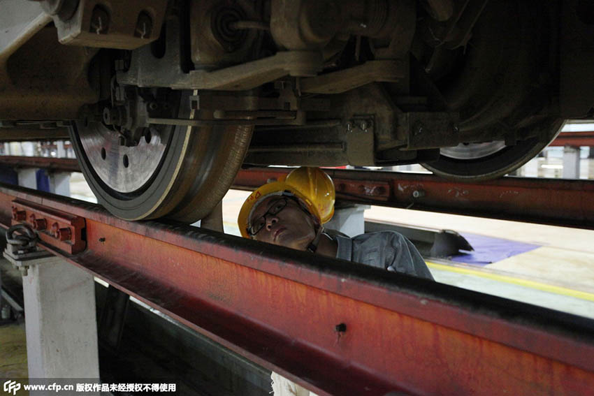 西安高速列車(chē)運(yùn)輸區(qū)の「列車(chē)の整備場(chǎng)」は西安鉄道局高速列車(chē)の修理點(diǎn)検業(yè)務(wù)を請(qǐng)け負(fù)っている。高速列車(chē)の多くは朝を迎えると出庫(kù)していき、日が暮れると帰ってくる。夜の間、遠(yuǎn)くを走り終え帰庫(kù)してきた列車(chē)は「列車(chē)の整備場(chǎng)」の中にゆっくりと入っていき、作業(yè)員は仕事を終えて帰ってきた列車(chē)に修理點(diǎn)検とクリーニングを施す。次の日、念入りなメンテナンスを終え、チリやほこりを洗い流した列車(chē)はまた元?dú)荬首摔切陇郡寺昧ⅳ盲皮い?編集JK)
