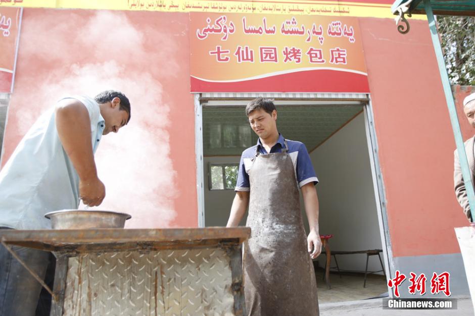 新疆維吾爾(ウイグル)自治區(qū)喀什(カシュガル)地區(qū)葉城(カルギリク)県薩依巴格郷17村の観光地?七仙園景區(qū)で、ウイグル族の青年、阿不都熱西木さんは、「焼き包子(パオズ)」の店を開業(yè)した。他の焼き包子と異なるのは、餡に肉ではなく現(xiàn)地特産のクルミを使用している點で、新しい味が好評を得ている。中國新聞網(wǎng)が伝えた。