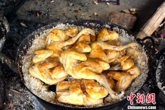 福建省漳州市竜文區(qū)雲(yún)洞巖の「塩鶏」の獨(dú)特な風(fēng)味に四方から客が押し寄せ、今や「塩鶏」ストリートになっている。「塩鶏」の作り方も獨(dú)特でジンジャー油、塩に食欲をそそられる。味わい豊かな黃金色をしており、皮も肉の柔らかく風(fēng)味があり宴席には欠かせない料理だ。中國新聞網(wǎng)が伝えた。(編集JK)