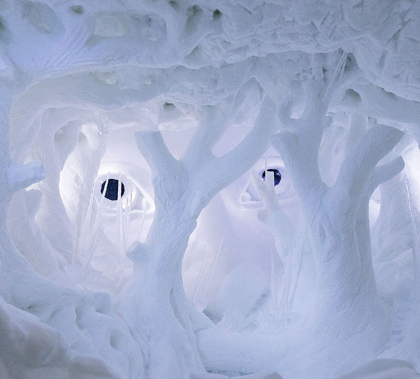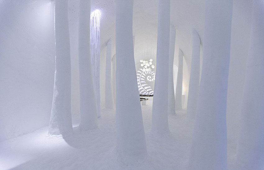 今年のアイスホテルが選んだスイートルームのテーマにおいて、彫刻家のアナソフィア?マーグ氏がデザインした「部屋の中の象」は、高さ3メートルのアフリカゾウが氷のベッドをのぞいている。この蕓術(shù)家はアイスホテルにとって見知らぬ人ではなく、彼女はかつてユニコーン型のホテルのロビーをデザインしたことがある。不眠気味の人からすると、氷でできた羊の彫刻で満たされたルカ?ロンコローニ氏の「羊を數(shù)える部屋」が非常に合っている。そのほか1970年の「愛のカプセル」をヒントにデザインしたもの、ロシアの帝國劇場などがある。ドイツの蕓術(shù)家、アンナカトリーヌ?クラウツ氏とハンス?アイスチェット氏がゴシック様式の氷の柱でイキイキとした森林彫刻をデザインした。