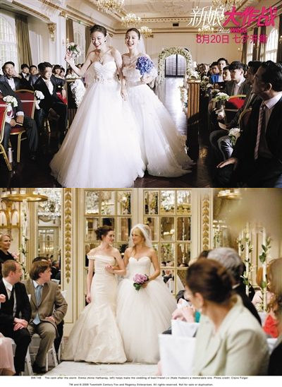 中國(guó)版「新娘大作戦」ポスター(上)と米國(guó)版「ブライダル?ウォーズ」