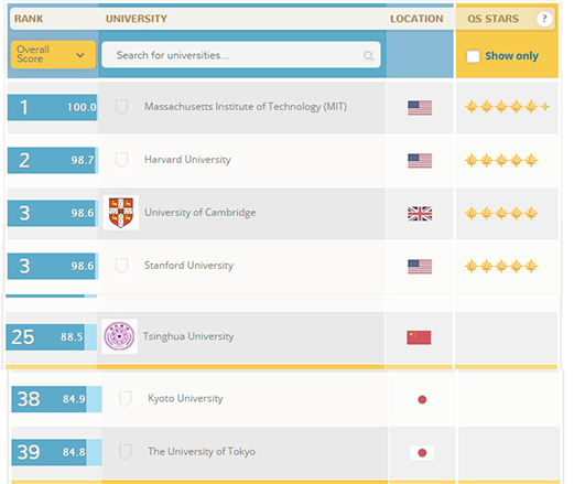 イギリスの大學(xué)評(píng)価機(jī)関「クアクアレリ?シモンズ社(QS)」がこのほど、「世界の大學(xué)のランキング(2015-16年)」を発表。トップはマサチューセッツ工科大學(xué)(米國(guó))で、以下、ハーバード大學(xué)(米國(guó))、 ケンブリッジ大學(xué)(英國(guó))と続いた。中國(guó)の大學(xué)を見(jiàn)ると、清華大學(xué)が25位、アジア3位に入った。2006年以降、中國(guó)大陸部の大學(xué)がトップ25に入るのはこれが初めて。アジア首位としてはシンガポール國(guó)立大學(xué)が12位にランクインしたほか、同じくシンガポールの南洋理工大學(xué)が前回から順位を26上げ、13位に入った。日本の大學(xué)では、京都大學(xué)が38位、東京大學(xué)が39位となっている。人民網(wǎng)が報(bào)じた。