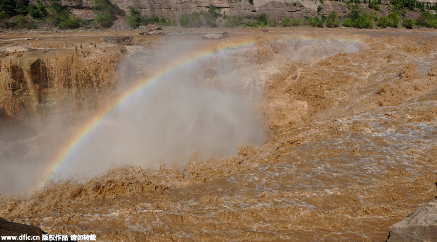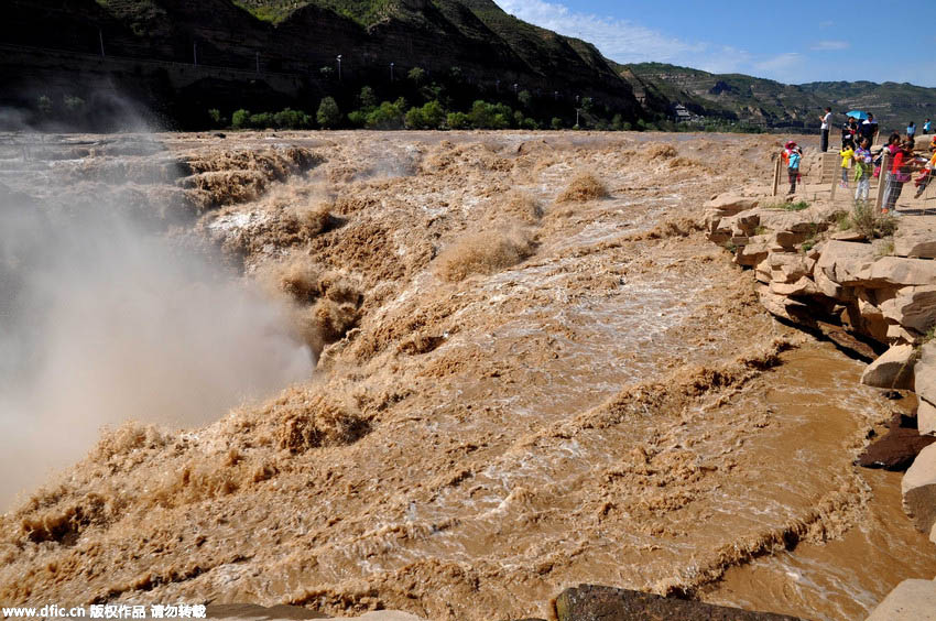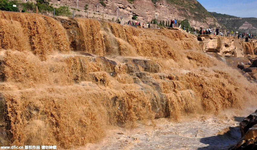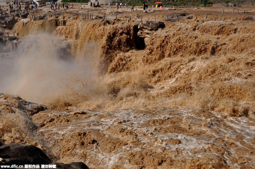 上流の降雨とダムの放水の影響を受けこのほど、黃河の主流は秋の増水期を迎えた。山西省吉県と峽西省宜川県の境に位置する壺口瀑布の水かさが増し、激しい勢(shì)いで流れ落ちる黃河に多くの観光客が集まった。(編集JK)