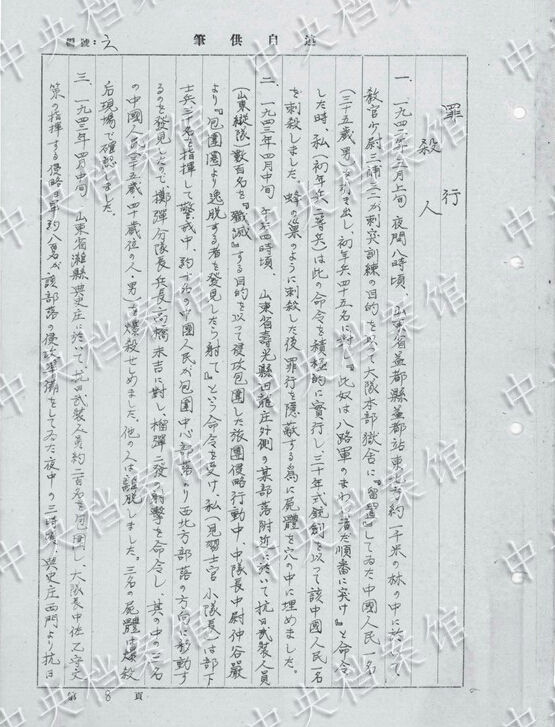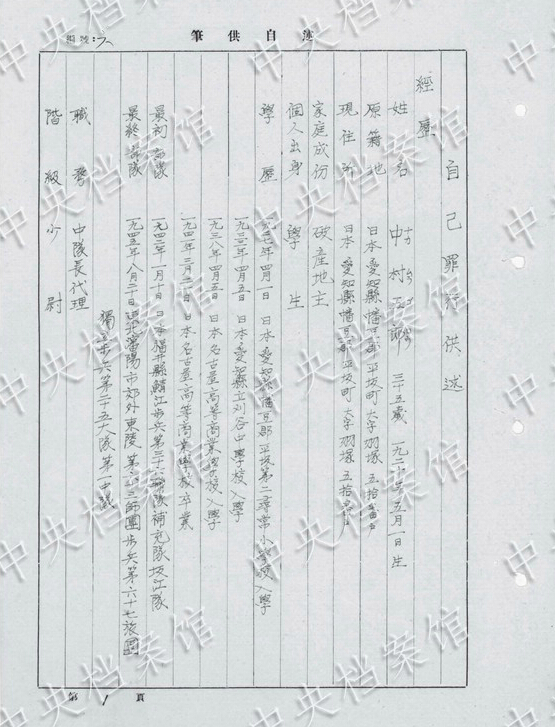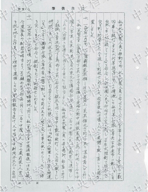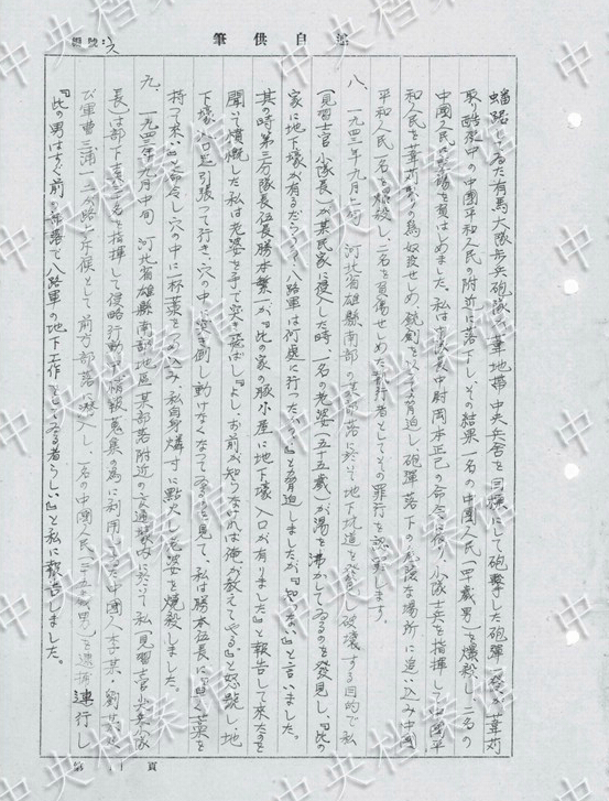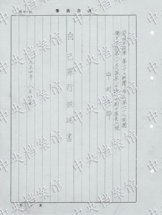 國家公文書局は10日、『中國侵略日本人戦犯供述書選』(三十一)日本人戦犯?中村五郎の供述書を公式ウェブサイトで公開した。