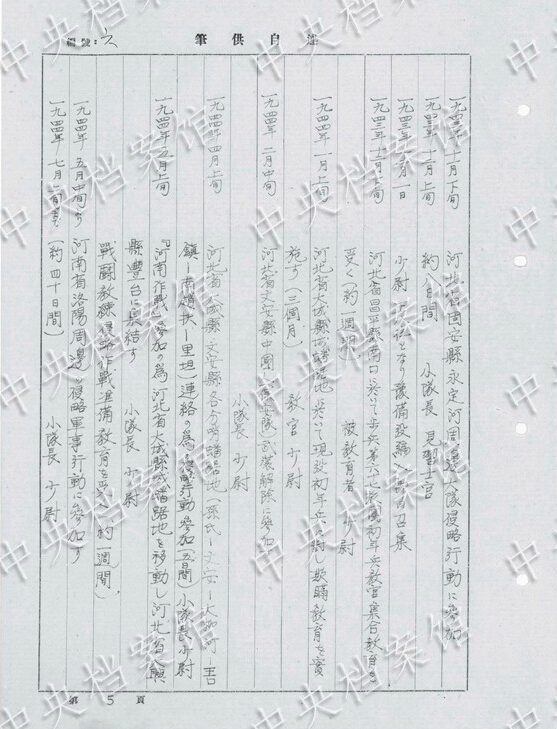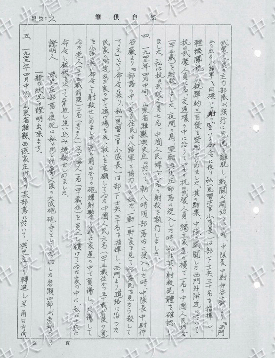 『中國侵略日本人戦犯供述書選』(三十一)日本人戦犯?中村五郎の供述書を公開