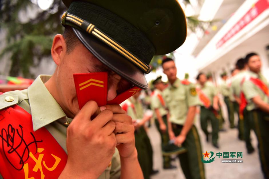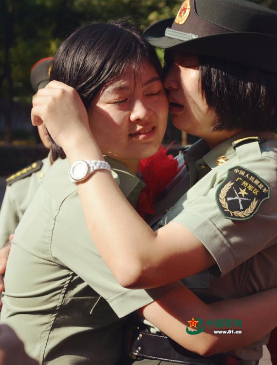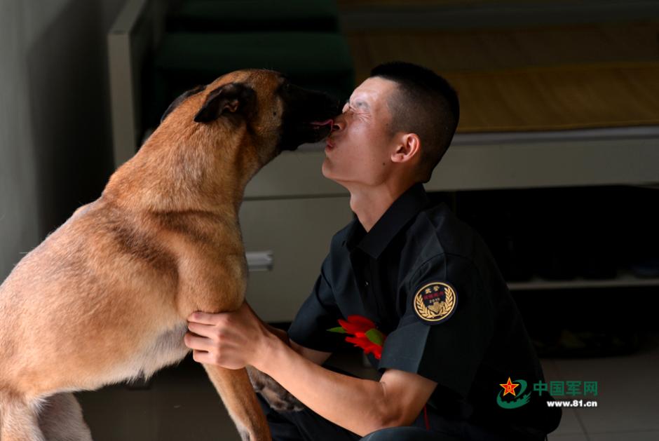 武裝警察重慶市総隊(duì)七支隊(duì)特勤中隊(duì)警察犬班の蔣治傑訓(xùn)練員は兵役期間満了し退役する。駐屯地を離れる際、彼が朝夕共に過ごした「物言わぬ戦友」ディナも彼が部隊(duì)を去るのを惜しみ、別れのキスをした。徴兵期間の調(diào)整に伴い、今年、初めて秋季退役を?qū)g施した。今年、中國(guó)軍は「一徴両選両退」(新兵の年1回の採(cǎi)用、士官の年2回の改選、任期満了の兵士の年2回の退役)政策を?qū)g施している。2013年度秋季入軍の兵士は9月4日から次々と兵舎を離れ、戦友との別れを惜しみ、故郷に錦を飾るべく新たな人生へと旅立っていく。これらの寫真は各地の退役兵士が去る際、キスで兵舎に別れを告げている寫真だ。中國(guó)軍網(wǎng)が伝えた。(編集JK)