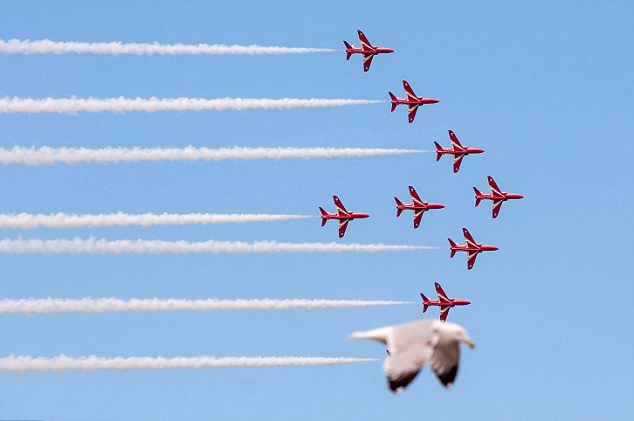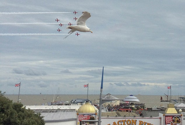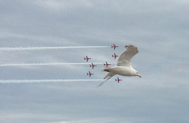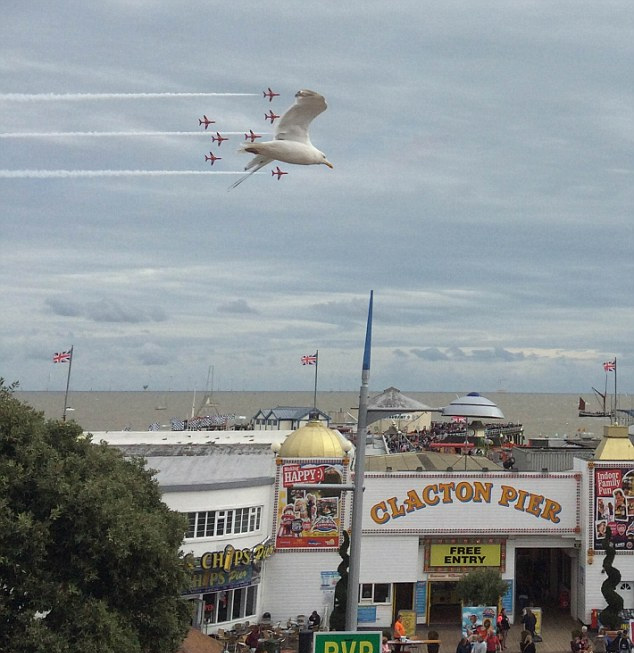 英國のアマチュアカメラマン、ブラックバーン氏が英國王室空軍「レッドアロウ」に一羽のカモメが「間違って入り込んだ」場面を撮影した。寫真では、カモメが世界的に有名な英國王室空軍のアクロバットチームの隊(duì)列を引っ張っているように見える。このカモメたちは埠頭で歓聲を上げる人だかりの上空を飛行した。寫真はカメラマンが先月行われたエセックスクラクトン航空ショーで撮影したものだ。英國「デイリーメール」紙の9月16日付の報(bào)道を引用して國際在線が伝えた。(編集JK)