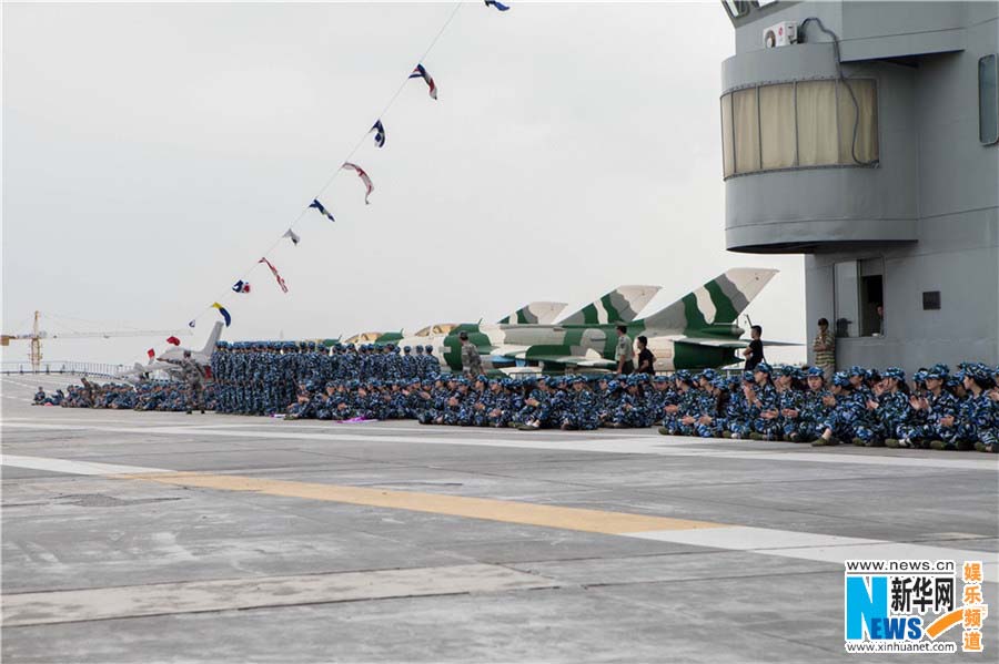 上海戯劇學(xué)院は今年、他の大學(xué)とは一味違い、初めて空母の甲板の上で軍事訓(xùn)練の閲兵式を行った。行進(jìn)や姿勢で上海戯劇學(xué)院生のスラリと長い足やスタイルを披露した他、ウォーミングアップの際には、迷彩服を著た女子大生が180度開腳を披露したりバレエを披露したりと、リラックスした雰囲気が漂い、蕓術(shù)校ならではの特別な軍事訓(xùn)練となった。(編集IM)