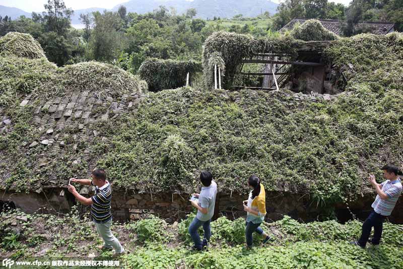 ここは23年間廃墟となった浙江省の古い村。楊祖柱?村黨支部書記が村周辺の雑草を除去しようと村人を引き連れ訪れてみると、驚いたことに、廃墟となっていた家々が窓も屋根も藤のつるに覆われ、レンガの隙間からはコケが生い茂り、扉からは草花が咲き誇り、そこはまるで「オズの魔法使い」のような緑溢れる童話の世界と化していた。人民網(wǎng)が伝えた。(編集IM)