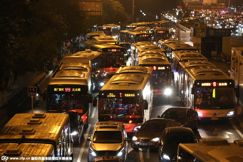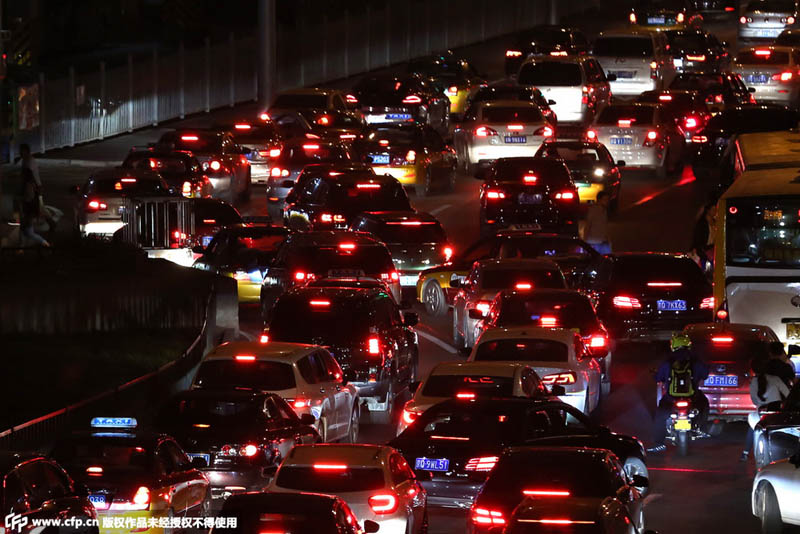 9月21日夕方のラッシュ時、深刻な渋滯となった北京の國貿橋付近。中秋節(jié)を目前に控え、「渋滯月」9月に「渋滯週」が到來した。深刻な渋滯は21日の他、24日、25日にも見られる予想だ。中秋節(jié)の9月27日の振替休日はなく、國慶節(jié)も近いため、連休前の買い物やパーティーといった影響を受けてデパートやスーパー周辺の道路は極めて深刻な渋滯に見舞われることが予想される。外出には公共交通機関を利用することを提案する。京華時報が伝えた。(編集IM)